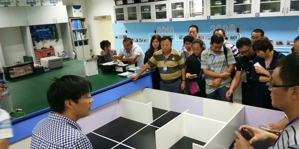 阿斑兔將機器人、創客、3D打印、航模等融為一體,研發、設計具有情景體驗、創意生成、原型制作、展示交流等多功能為一體的機器人教育教學場所,即創新教育實驗室,針對不同年齡段學生的特點、學校學情等,為其提供足夠的空間、設備和完善的課程體系。